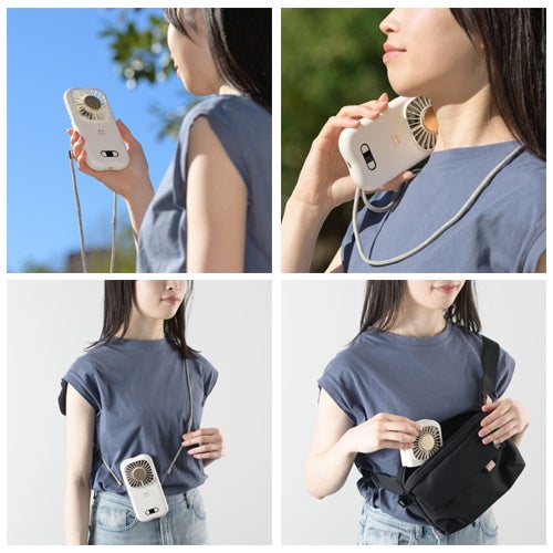 薄型&軽量デザインで持ち運びも快適、1台6役の多機能ファン。冷却プレートで首元や手のひらをすぐにクールダウンでき、暑い日も快適です。手持ちで使えるハンディファン、角度調整可能なデスクファンのほか、ストラップを付けて手ぶらでも使えるネックファンとしても。