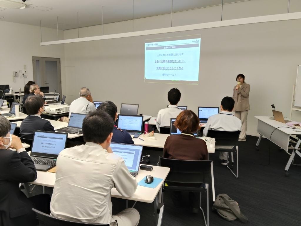 現地・オンライン合わせて多数の職員が参加。AIとの「壁打ち」で業務改善の糸口を発見し、個別相談会では部署固有の課題にも踏み込んだ実践型研修に。