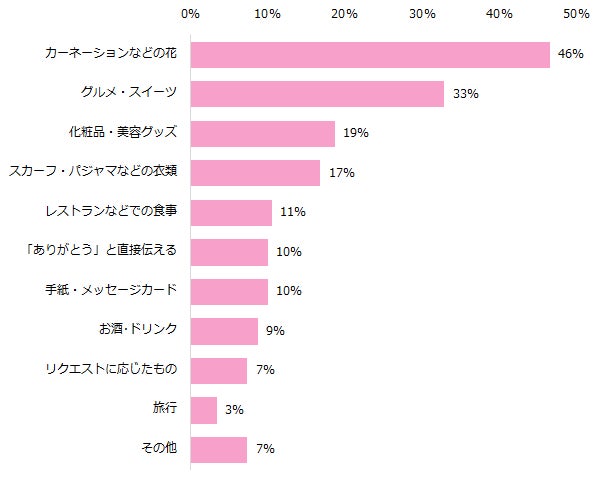 ・母が花が好きなのと、目に見える形で祝えるので、毎年花にしています。(21歳男性)