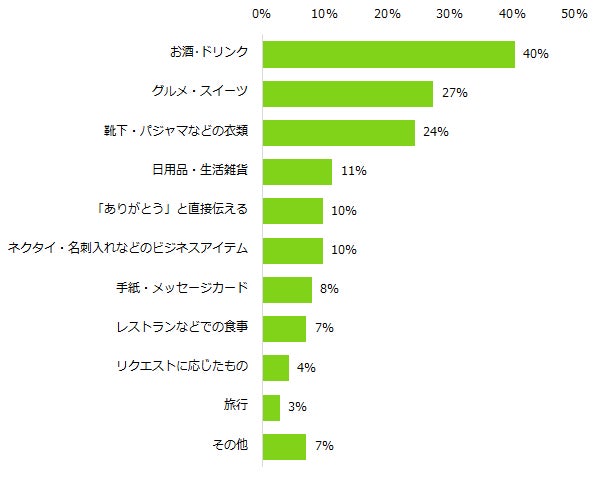 【図7】「父の日にプレゼントを贈る予定あり」と回答した方に伺います。今年の父の日に贈るプレゼントを教えてください。(複数回答可)