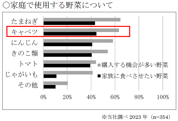 合わせ調味料に対しては、身近な素材で家族が好きなボリュームメニューを作れることが重視されています。町中華の魅力である「ボリューム」や「子どもから大人まで食べられるメニュー」を体現する新たな味わいとして、常備菜の中でも家族に食べさせたい人気の野菜「キャベツ」に注目しました。