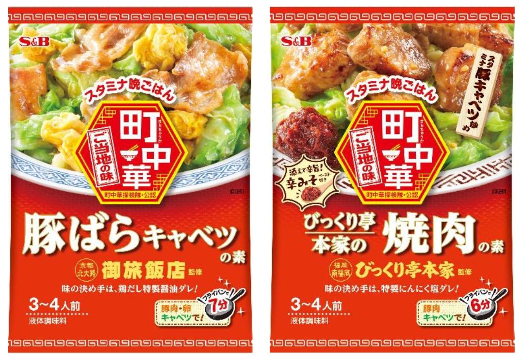 エスビー食品株式会社は、古くから地域で愛され続ける中華料理中心の大衆食堂の味わいを再現した、「町中華」合わせ調味料シリーズより、新たなラインアップとして「豚ばらキャベツの素」「びっくり亭本家の焼肉の素」を新発売します。