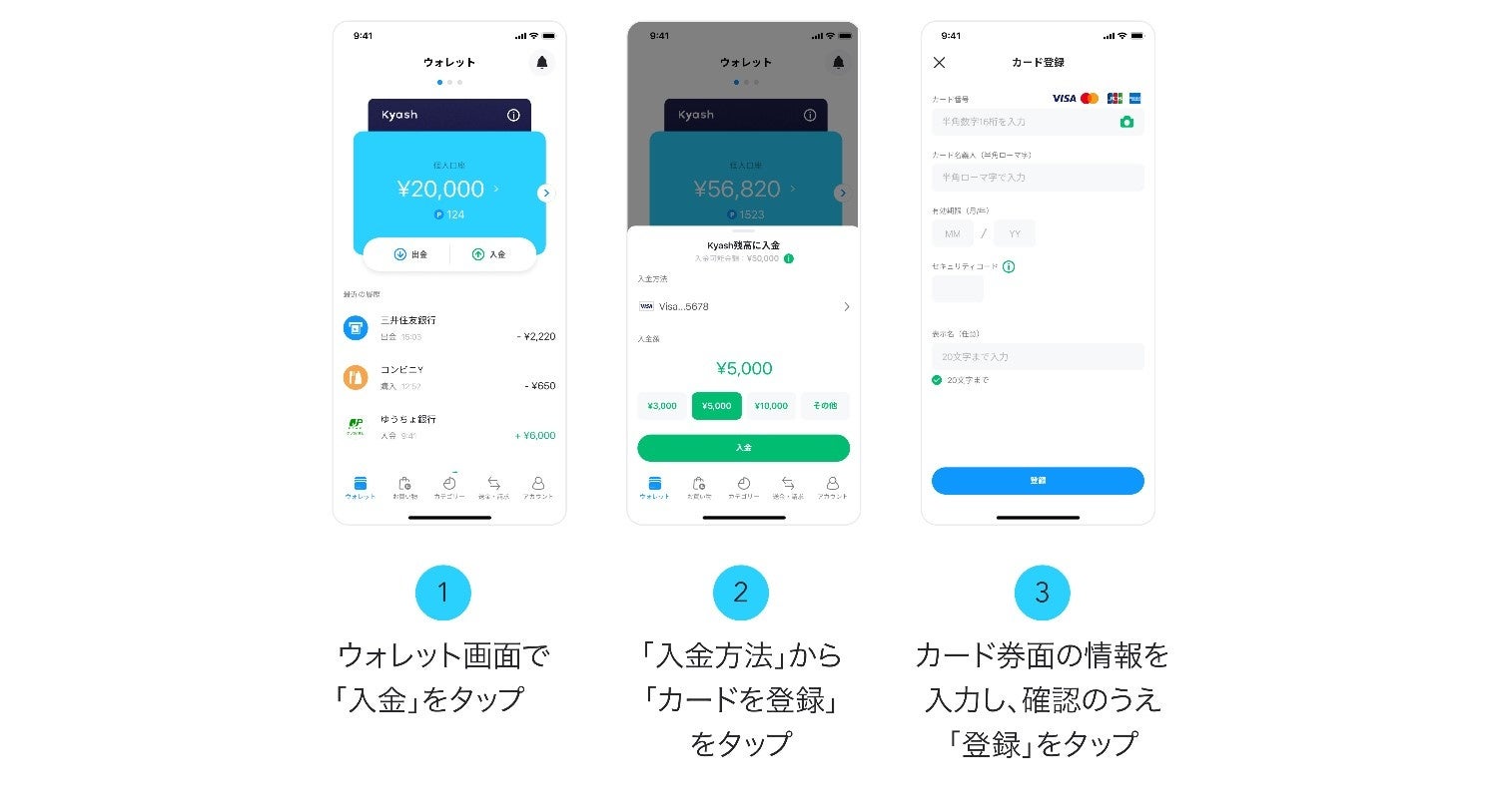 株式会社ジェーシービー (本社:東京都港区、代表取締役会長兼執行役員社長:浜川 一郎、以下:JCB)は、株式会社Kyash(本社:東京都港区、代表取締役社長:鷹取 真一、以下:Kyash)が提供するデジタルウォレットアプリ「Kyash」にてJCBおよび、アメリカン・エキスプレスブランドでの入金が可能になることをお知らせします。
