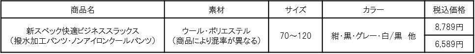 - ■「新スペック快適ビジネススラックス(ノータック)」商品特長