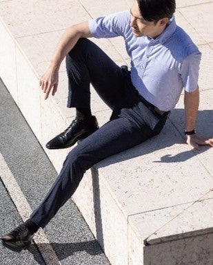 AOKI&信州大学繊維学部の協同研究成果を活用!「スラックスロボット」により履き心地が実証された「新スペック快適ビジネススラックス」が登場!