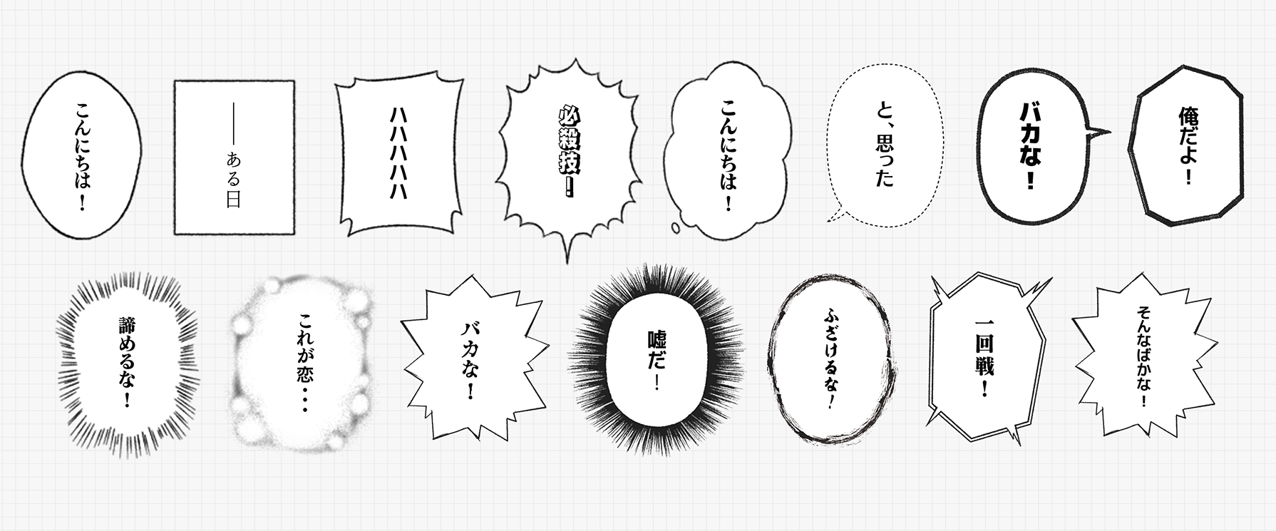 3 セリフを入力:セリフの内容に適したふきだしをさまざまなデザインから選べます。