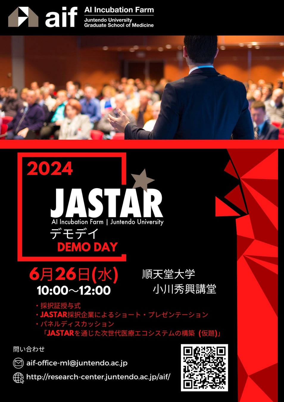 【6/26(水)10:00~12:00】順天堂大学AIインキュベーションファームが、Link-Jとの共催イベントJASTAR DEMO DAYを開催