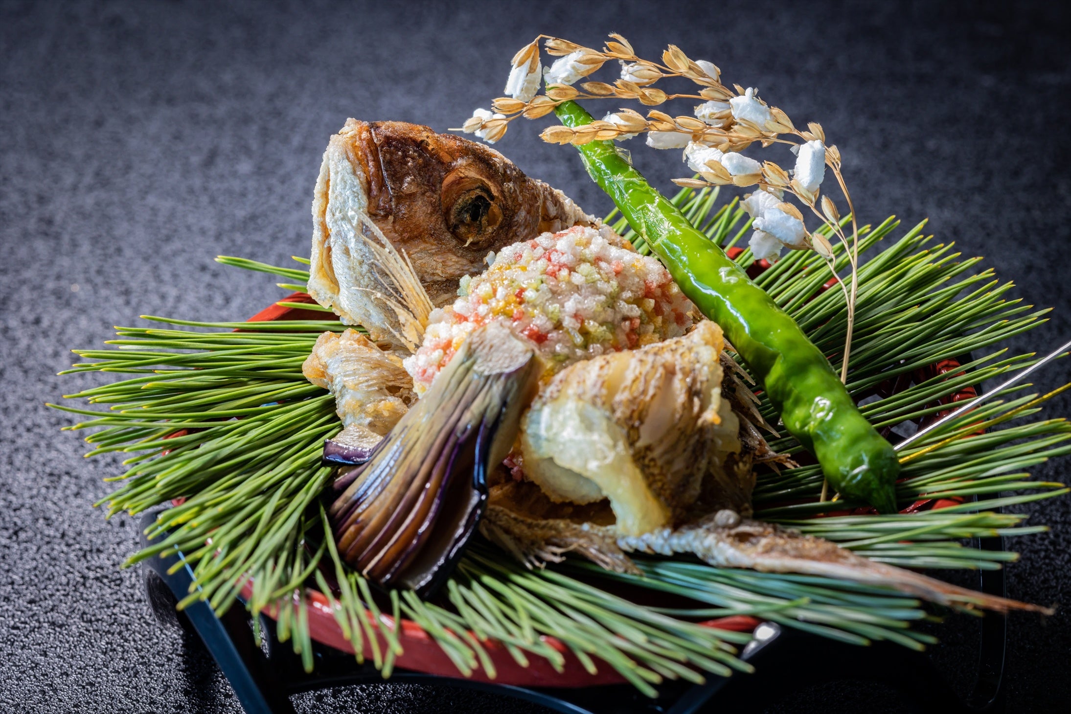 - 揚 物 鳴門鯛紅白揚げ 甘長唐辛子 末広なす 稲穂