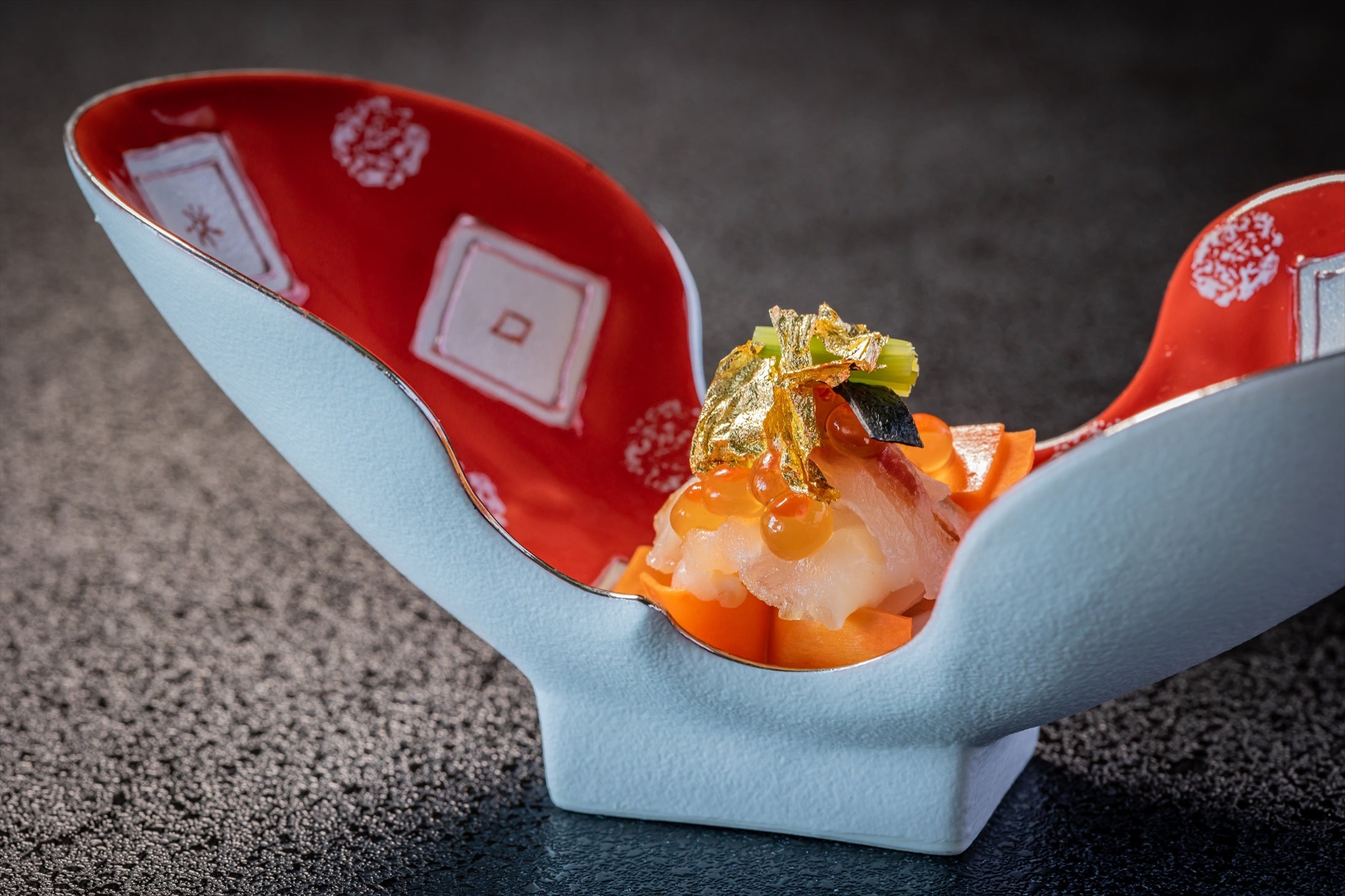 - 凌 ぎ 鳴門鯛紅白なます 水前寺海苔 イクラ 三つ葉 金箔