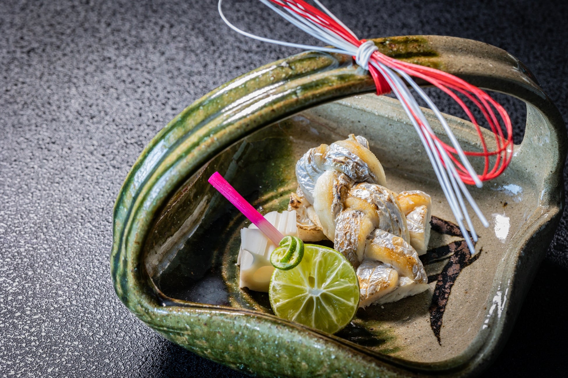 - 八喜物 徳島県産太刀魚の塩焼 紅白はじかみ 新蓮根甘酢漬け 巣立ち