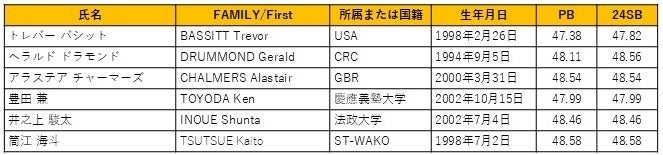 男子400mハードルには、2022年オレゴン世界選手権銅メダリストのトレヴァー・バシット(アメリカ)が出場決定。日本からは、パリオリンピック日本代表の豊田兼(慶應義塾大学)、筒江海斗(ST-WAKO)、さらに、昨年の日本インカレで東京世界選手権(東京2025世界陸上)標準記録を突破した井之上駿太(法政大学)が迎え撃ちます。