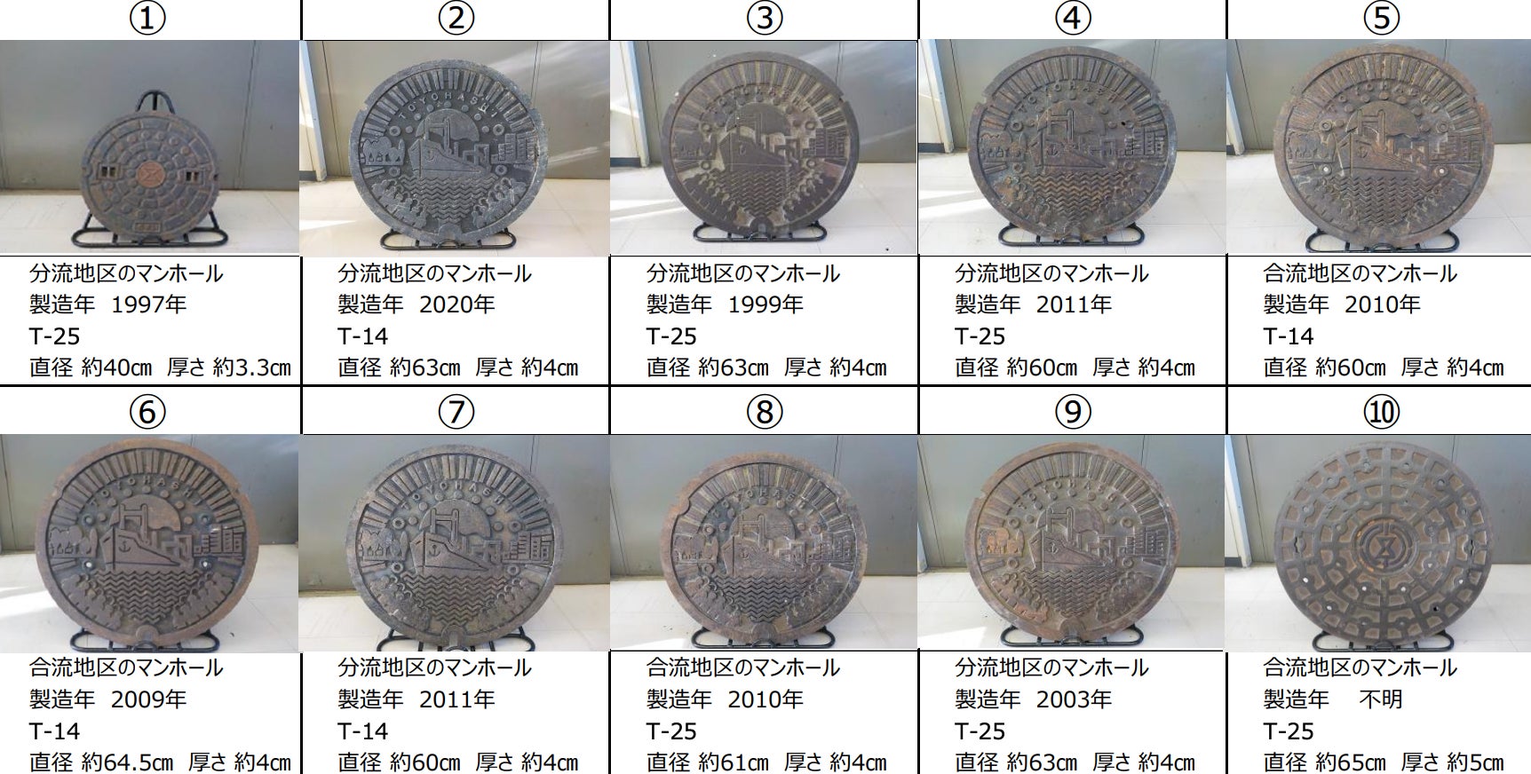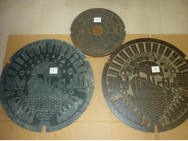 絵柄は同じでも、役目を果たしたマンホール蓋には一つ一つ異なる表情があります。豊橋市上下水道局3階下水道整備課に来ていただければ、1月17日(金)までの平日9時から16時まで、販売予定の蓋を直接確認することも可能です。希望の方は前日までに電話、またはメールでご連絡下さい。