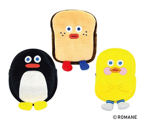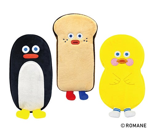 人気のキャラクター、トースト・ダック・ペンギンが「マスコット」「ロングポーチ」「ダイカットポーチ」「ヘアバンド」になって登場します。