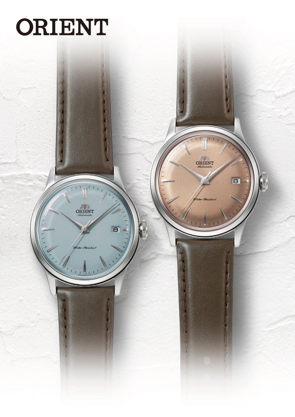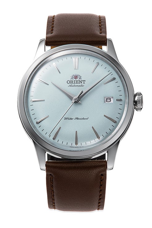 クラシカルで伝統的な印象が際立つフェースや、レトロなイメージを醸すボックスガラスとボンベダイヤル、細身のラグを配した繊細なケースデザインなどを特長とし、世界でも長く人気を誇る「オリエントバンビーノ」。最新作は、2022年から加わった腕なじみの良い38.4mmケースに、目を引く2種類のカラーダイヤルを組み合わせています。