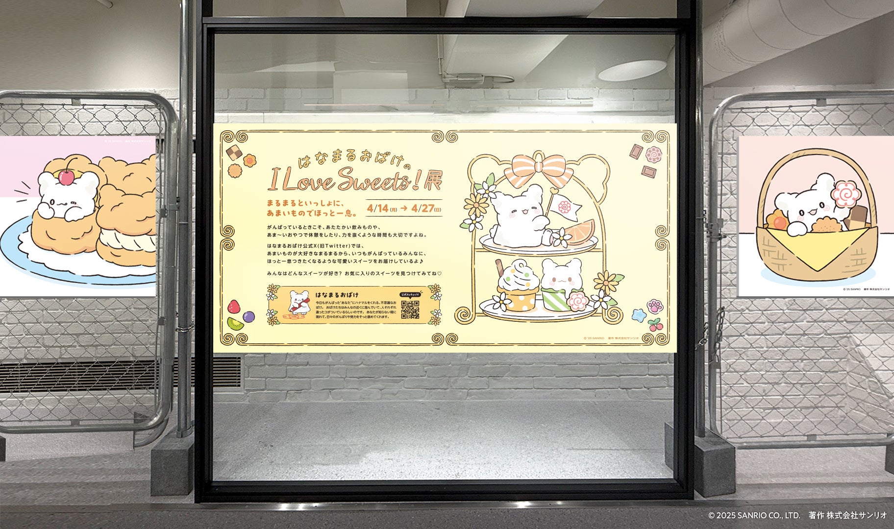 さらに、同エリアでは、はなまるおばけ公式Xのアートを展示するイラストパネル展「はなまるおばけの I love sweets!展」も開催。まるまるとスイーツのかわいらしい組み合わせのイラスト15種類を展示いたします。