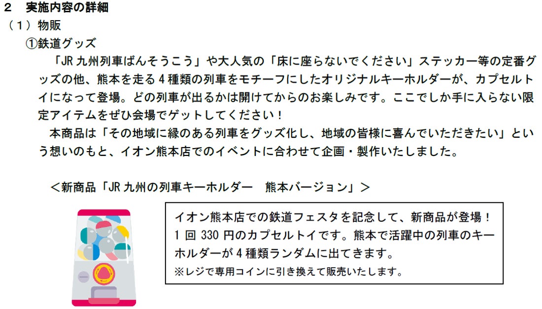 熊本限定キーホルダーが登場!熊本を走る”推し列車”をゲットしよう「イオン熊本店」にてイベント「イオン鉄道フェスタ」を開催します!