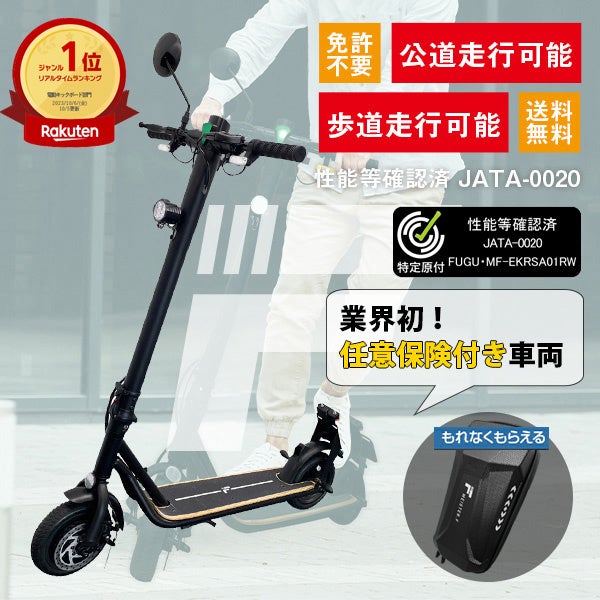 楽天市場「Show !t」では、あいおいニッセイ同和損保と提携し、1年間の無料傷害保険が付いた「MEISTER.F」の電動キックボードを販売中です。保安部品やアフターサポートの充実、1年保証もあり、安心して購入・利用できます。
