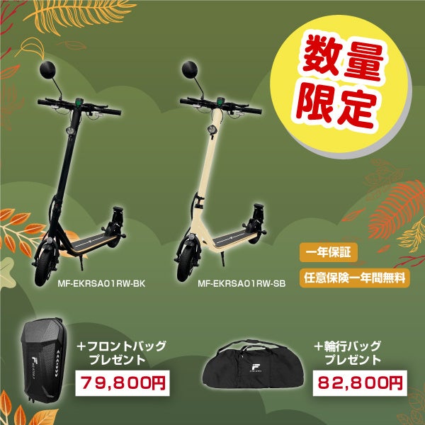 楽天『Show !t』10月のキャンペーンがスタート!この秋、特定小型電動キックボードを特別価格でゲットしませんか?初心者にもおすすめのブランドで、フロントバッグは無料、輪行バッグも格安で手に入るチャンス。さらに、1年間の任意保険無料キャンペーンも継続中です。新しい移動手段で秋の爽やかな風を感じながら、お得なキャンペーンをぜひご活用ください!