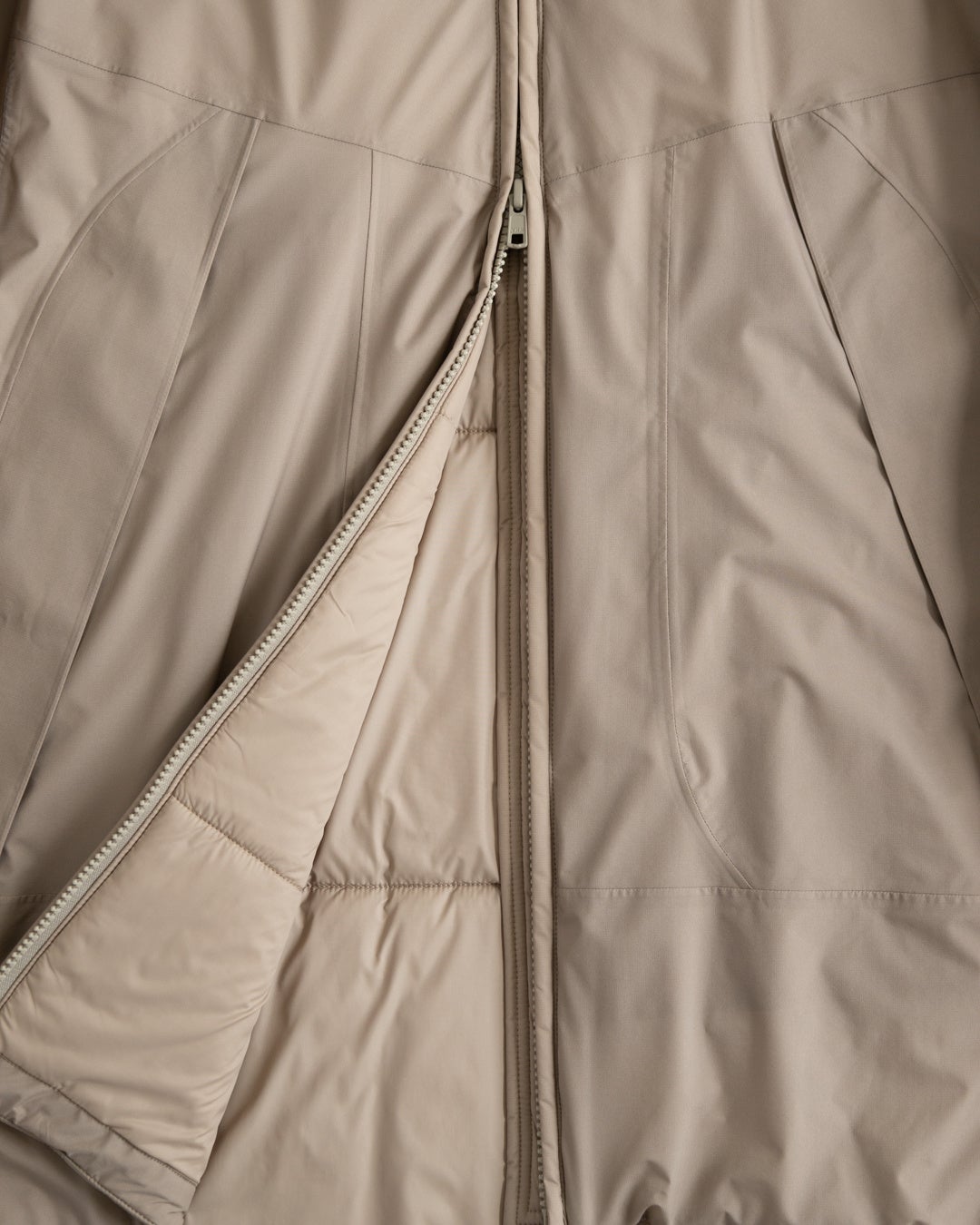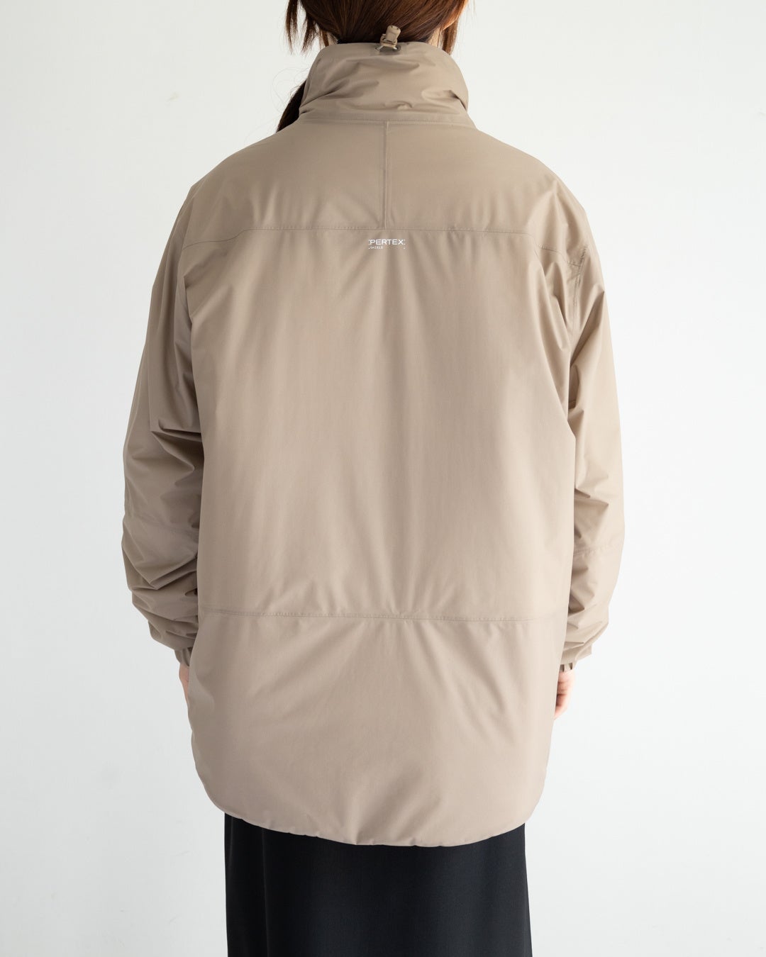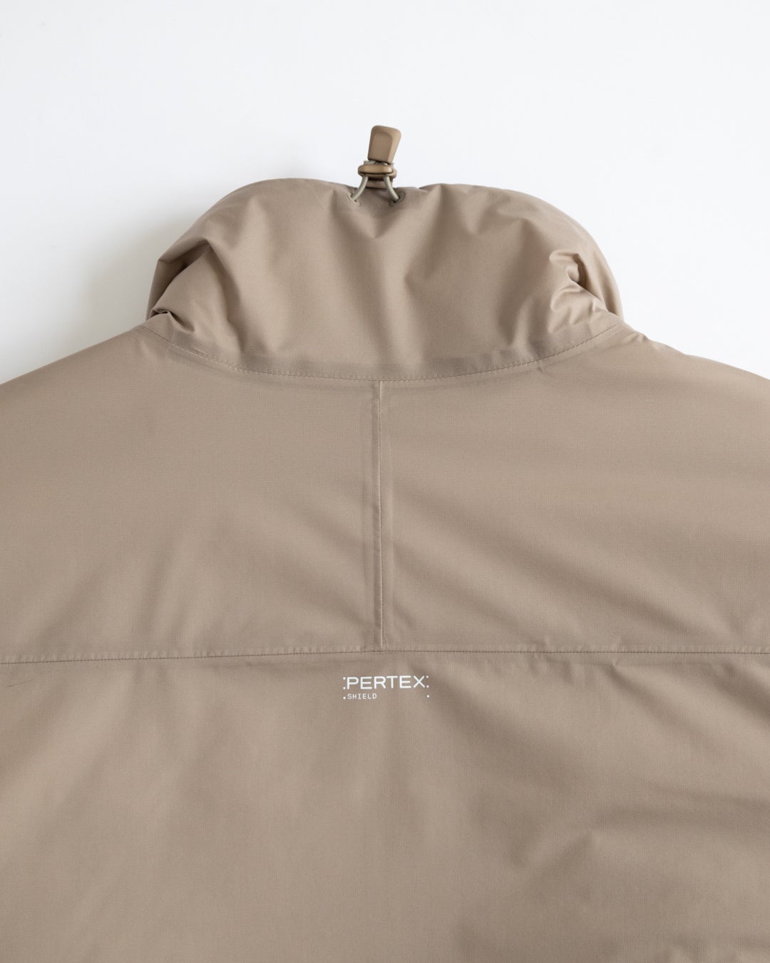 表地には防水透湿性が高い"PERTEX SHIELD"を使用し、中綿には"PRIMAROFT"が備わっているため軽量で保温性の高さも優れています。