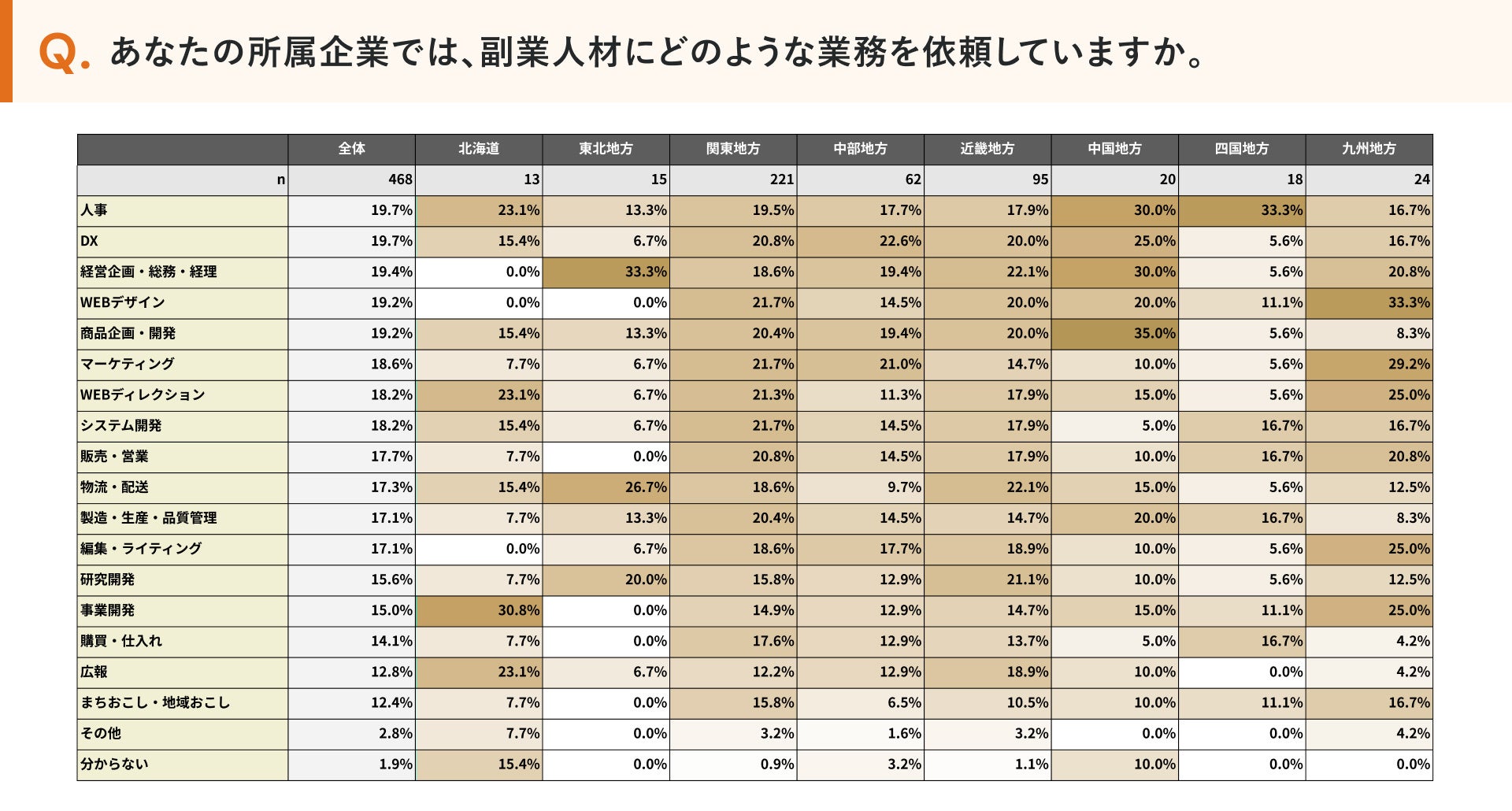 副業解禁は「中部地方」、受け入れは「四国地方」が最多