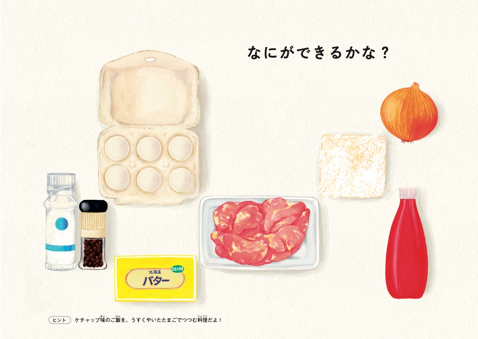 クイズ形式で楽しく学べる食育絵本『なにができるかな?』を6月21日に発売しました。スパゲティ、ケチャップ、ソーセージ……さまざまな食材が描かれたページをめくると答えが判明! こどもと一緒に「食」を考えるきっかけに。かわいいイラストでプレゼントにも最適な一冊。