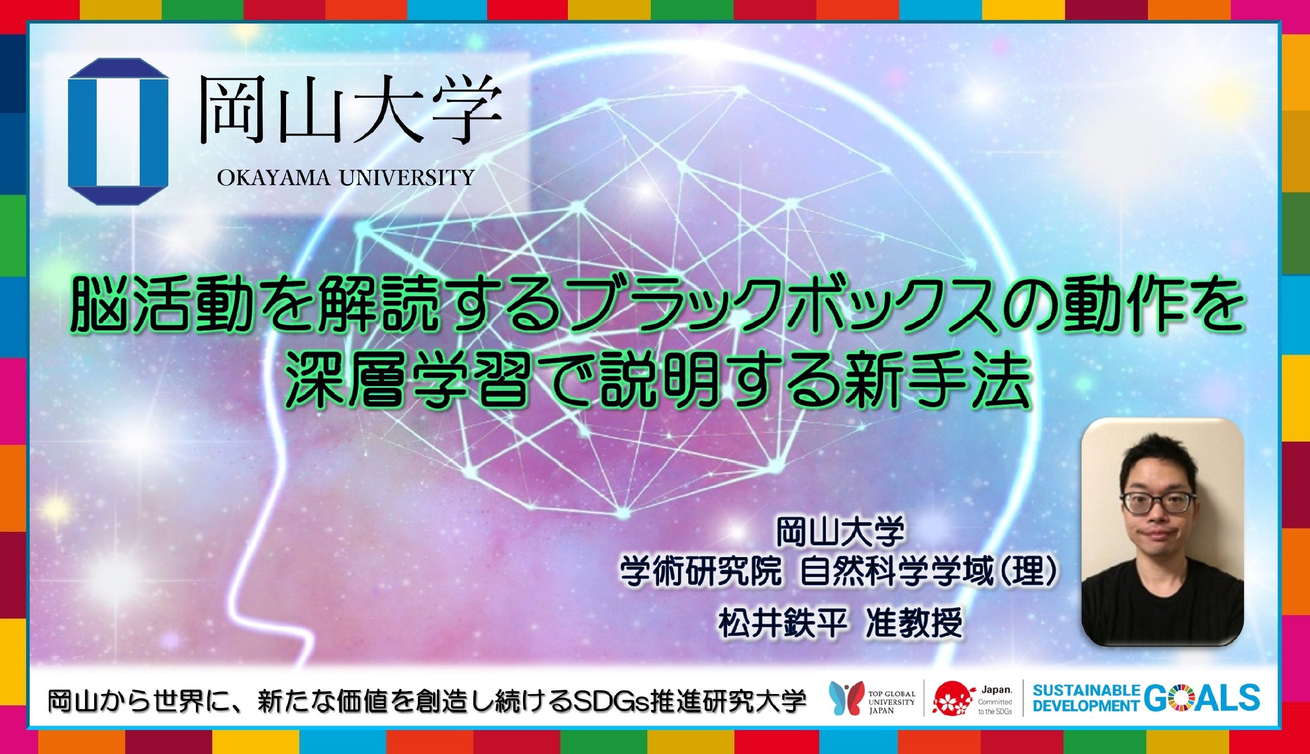 国立大学法人岡山大学(本部:岡山市北区、学長:槇野博史)学術研究院自然科学学域(理・生物)の松井鉄平准教授と立教大学大学院人工知能研究科の瀧雅人准教授、生理学研究所のトラン・ファム(Trung Quang Pham)特任助教、株式会社アラヤの近添淳一主任研究員、慶應義塾大学(理工学部)の地村弘二准教授の共同研究グループは、脳活動を解読する深層神経回路の動作を直感的に説明する新しい手法を開発しました。