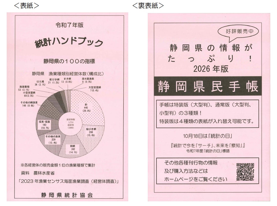 「令和7年版 統計ハンドブック~静岡県の100の指標~」を発行しました。これを読めば“静岡統計王”になれる人気ブックです!ポケットサイズなのでカバンに入れても場所を取らず、会話に行き詰まった時などに役立つ嬉しいアイテムです。