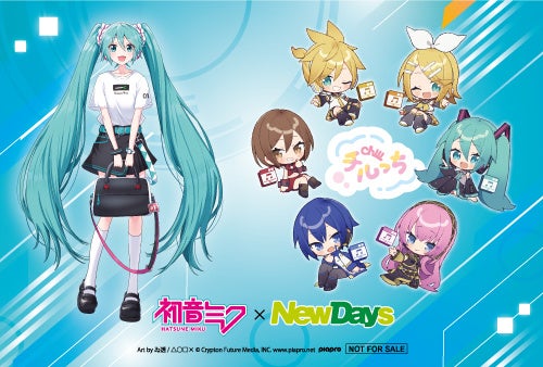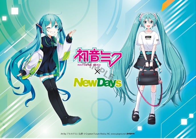 NewDaysのためのコラボオリジナルイラストを使用した限定グッズ全34種の販売や、対象の「初音ミク」コラボ商品1点以上を含むお買い上げ条件をクリアすると、ノベルティ特典を先着順にプレゼントするキャンペーンを展開します。