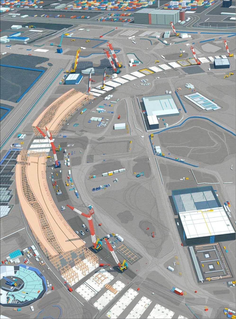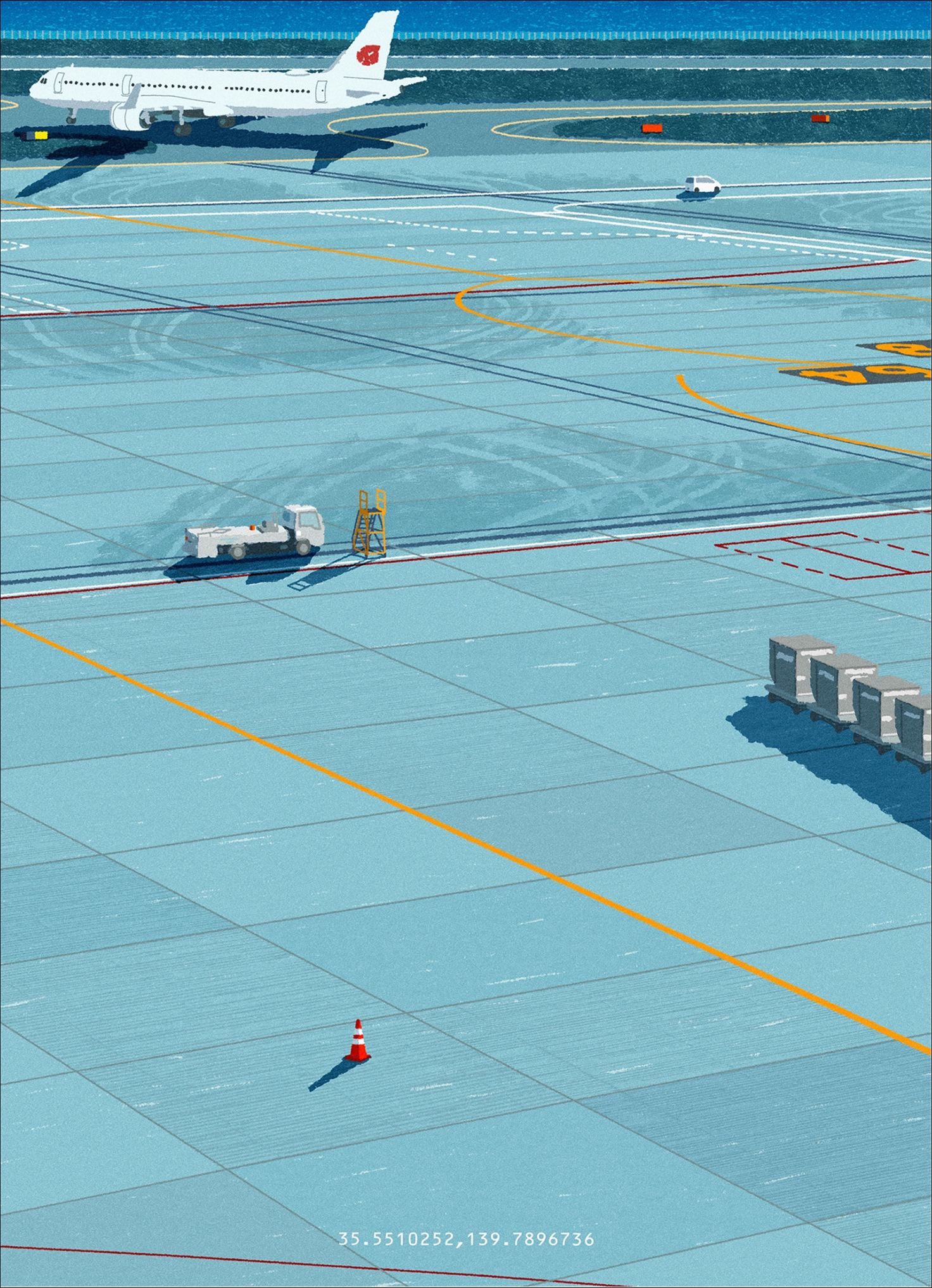 嶋田里英が描くのは、街を行き交う人や車、いつもどこか建設途中のビル、車窓から見える景色、乗客の搭乗を待つ飛行機など、日常の何気ない風景だが、物語のワンシーンのような、“心ほぐれる瞬間”を切り取って描いている。その独特の視点やノスタルジーと現代性を併せ持った作風により多くの人から共感を集めている。