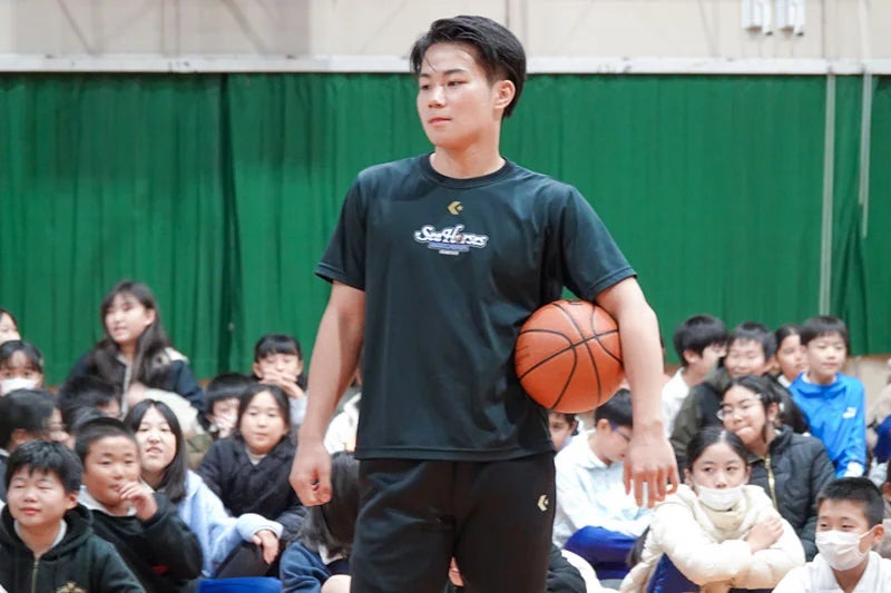 また、将来バスケットボール選手になりたい!という夢を持つ児童に、「将来は同じコートに立とう!」と熱いメッセージをお伝えしました。