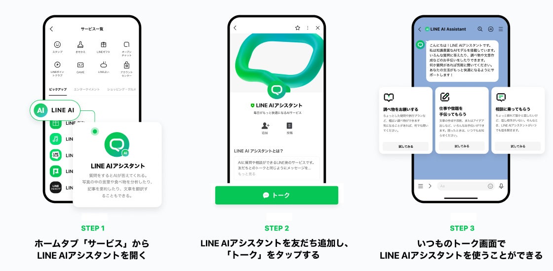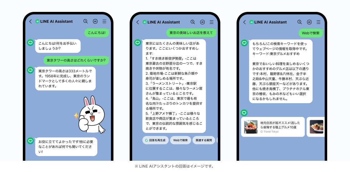 ※LINE AIアシスタントのサービス利用規約( https://terms2.line.me/line_ai_assistant_term?lang=ja)に合意のうえ利用が必要です。