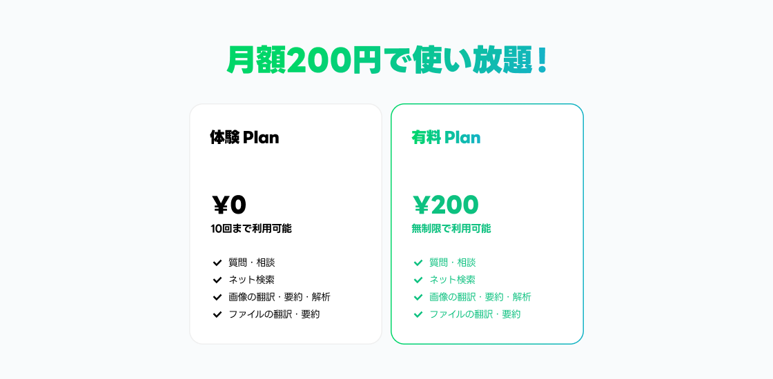 有料プラン | ・月額200円 ・すべての機能が利用可能 |