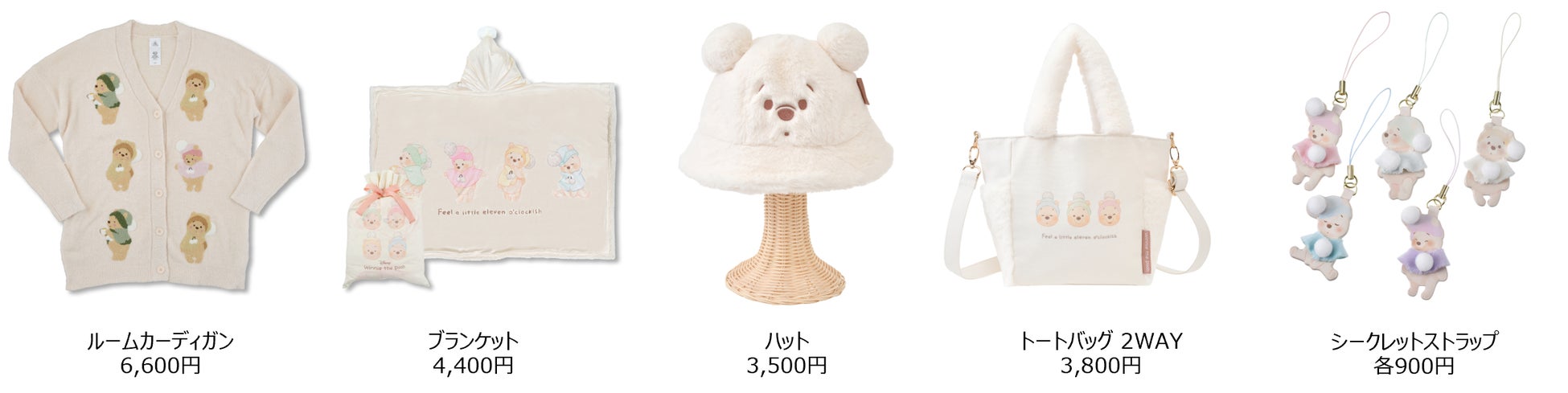 大人気のぬいぐるみとぬいぐるみキーチェーンは、プーさんと仲間たちが勢揃い。それぞれ色違いのケープと帽子を身につけ、もちもちふんわりとした肌触りで、抱き心地も抜群です。また、寒い季節にぴったりのルームカーディガンや、フードを被るとポンチョのように使用できるブランケット、ヘアバンドやルームソックスなど、おうち時間がさらに楽しくなるアイテムも充実。さらに、プーさんのフェイスと耳がキュートなふわふわのハットや、持ち手とサイドにフェイクファーをあしらったトートバッグなど、冬らしいデザインのファッションアイテムも多数ご用意しました。そのほか、プーさんのポーズが異なる全5種類のシークレットストラップも登場します。