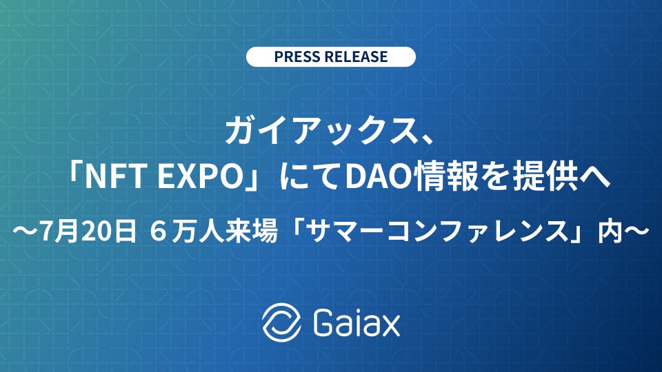 自律分散型組織「DAO」のコンサルティング・実務支援を提供する株式会社ガイアックス(本社:東京都千代田区、代表執行役社長:上田 祐司、証券コード:3775、以下 ガイアックス)は、7月20日(土)に、パシフィコ横浜臨海パークにて開催されるイベント「NFT EXPO」に出展し、DAO事例・活用情報を提供します。