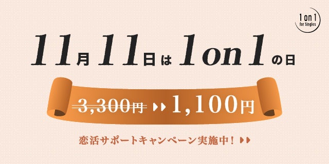「独身の日」の11月11日に1on1が1,100円に!1対1で出会えるカフェ『1on1 for Singles』の料金が約70%OFF!