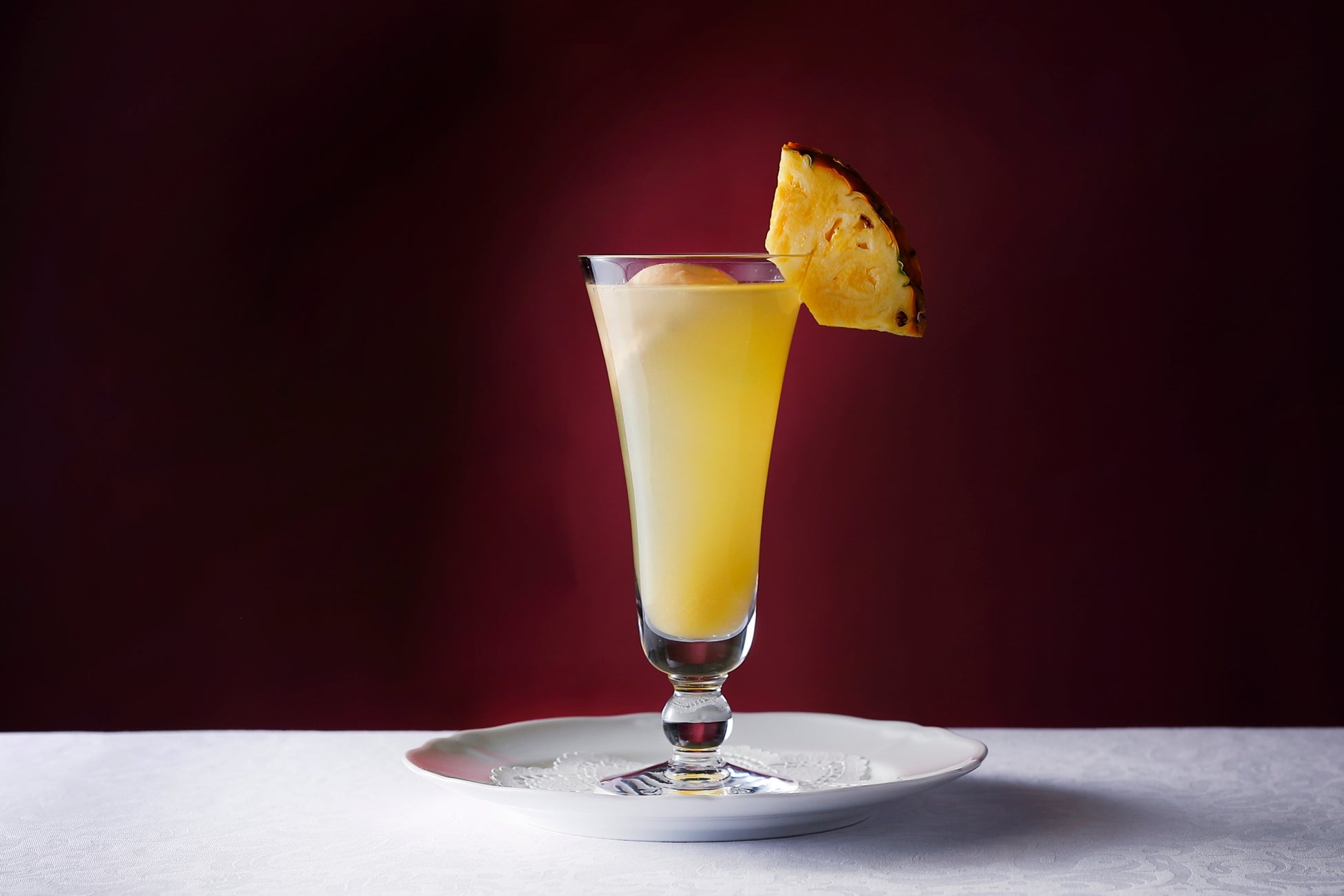 沖縄県産“ピーチパイン”で丁寧に仕上げたシロップに、伝統のバニラアイスクリームを浮かべた至高の一杯です。