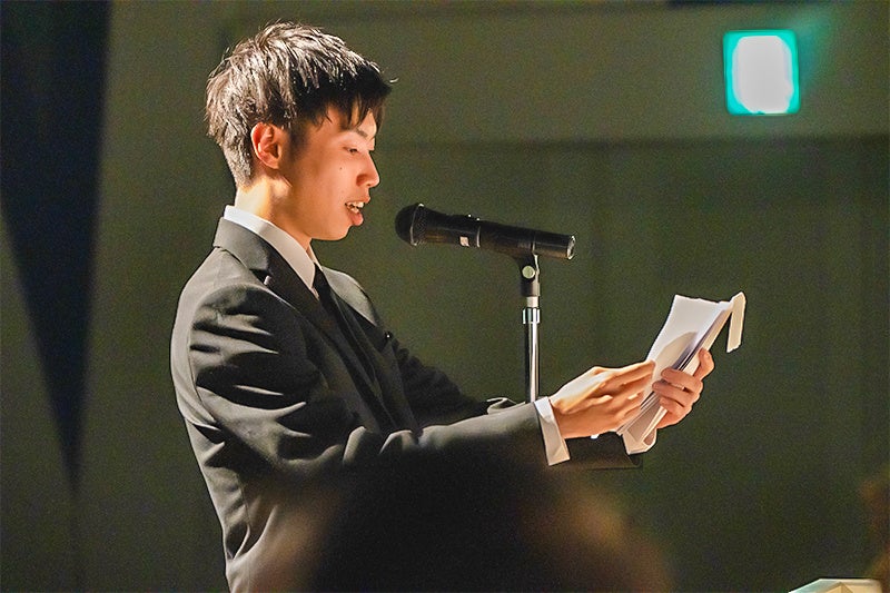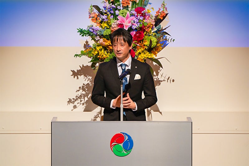 卒業式では吉川弘之学長から学位記が授与され、来賓の株式会社NTT DXパートナー代表取締役の長谷部豊氏、株式会社セガ執行役員の石川桂氏からは、プロフェッショナルとして社会に羽ばたく学生たちへ期待を込めた祝辞をいただきました。