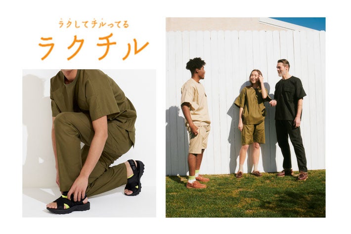 綿100%素材を採用。ラクを追求した設計で動きやすく、 アウトドアシーンにもおすすめのウェア