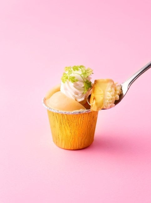 北海道スイーツを扱う【フワトロワルタオ】から新作スイーツのご紹介。チーズスフレプリン×白桃の「白桃トロワフロマージュスフレ」