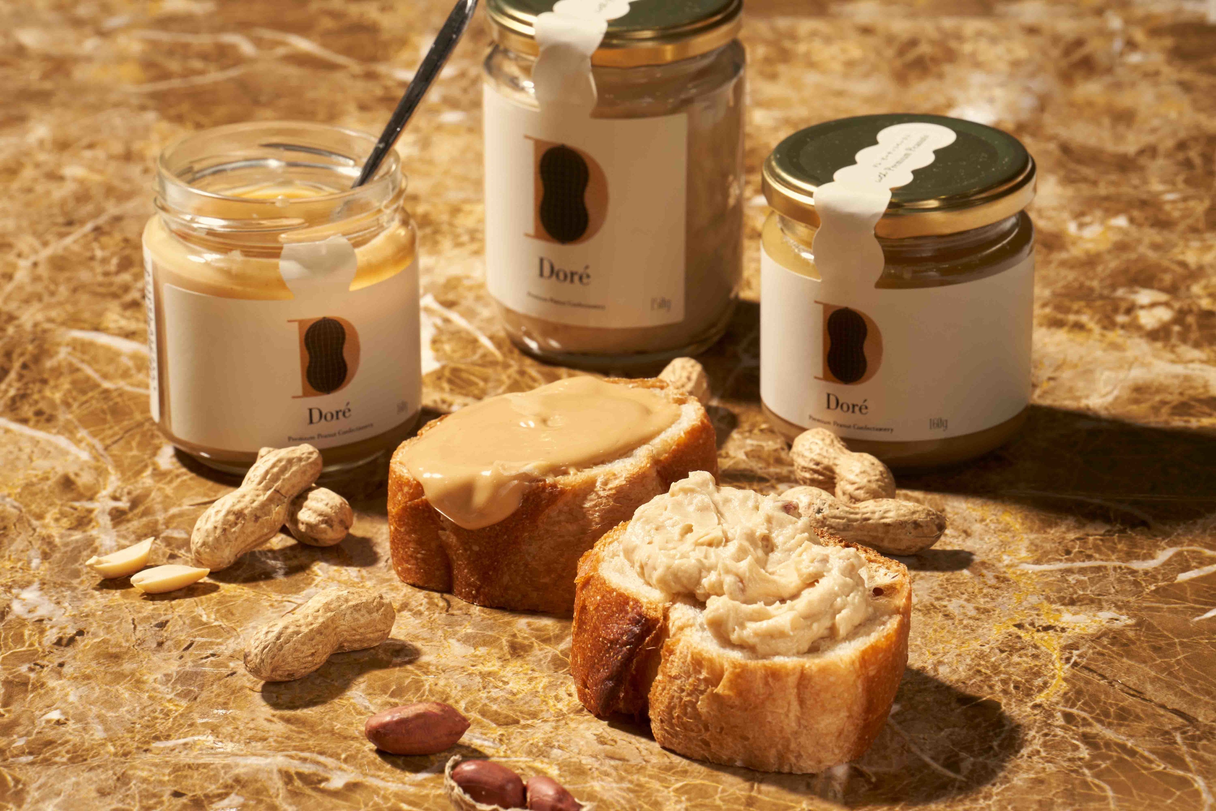 黄金に輝くピーナッツスイーツブランド【Doré(ドレ)】より、「ドレ・ピーナッツペースト&ピーナッツクリームセット」が新発売