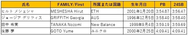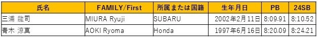 両種目には、日本が世界に誇るトップアスリートがエントリー。男子3000m障害物には、日本記録保持者でオリンピックと世界選手権を通算3大会で入賞を果たした両種目には、日本が世界に誇るトップアスリートがエントリー。男子3000m障害物には、日本記録保持者でオリンピックと世界選手権を通算3大会で入賞を果たした三浦龍司(SUBARU)、女子1500mには同種目をはじめ3種目の日本記録を持ち、東京オリンピックで1500m8位入賞を果たした田中希実(New Balance)が出場予定です。さらに、世界選手権4大会連続出場の男子3000m障害物の青木涼真(Honda)、 パリオリンピック日本代表で2023年アジア選手権2位の女子1500mの後藤夢(ユニクロ)もエントリーが決定しております。