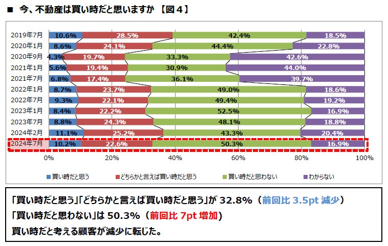 野村不動産ソリューションズ株式会社(本社:東京都新宿区/代表取締役社長:前田 研一)は、2024年7月1日~7月14日に「住宅購入に関する意識調査(第27回)」を実施いたしました。この度、調査結果がまとまりましたのでお知らせいたします。本調査は、不動産の購入検討者であるノムコム会員を対象に、2011年以降年2回、不動産の買い時感をはじめとする市況に対するお考えなどをお聞きしているものです。