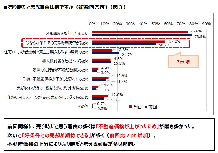 ・建設関係作業費、住宅資材の値上がりが予想され、また円安が続く限りは外国人の購入意欲が衰えな いと思われるため。