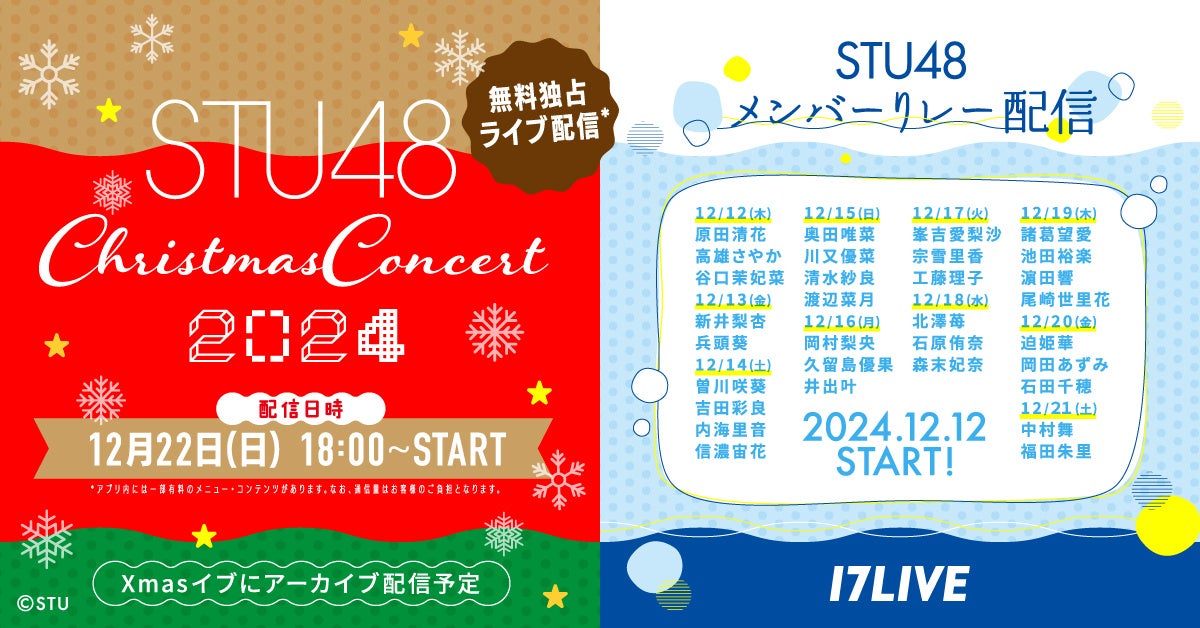 STU48×17LIVE メンバーリレー配信 & STU48 Christmas Concert 2024 無料独占ライブ配信!