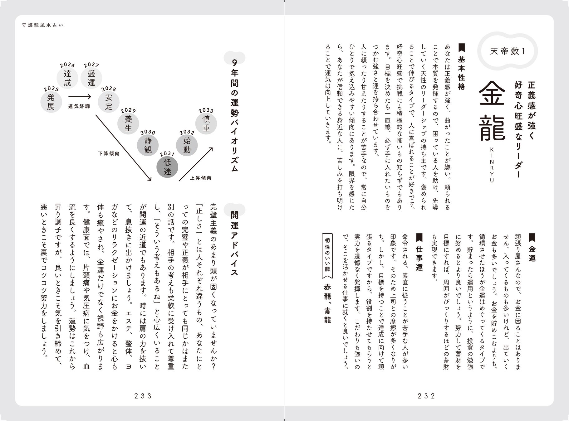 本書では、龍の子孫であると伝えられてきた「愛新覚羅家」(中国の清朝の皇帝)の末裔であり、20年にわたり、東洋哲学や思想をもとにした長年の風水研究と、25,000人以上を鑑定してきた実績を併せ持つ、“愛新覚羅ゆうはん流の風水”の神髄とも集大成ともいえる、風水の決定版。