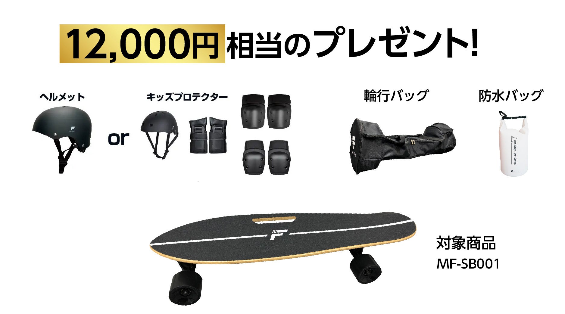 楽天市場「Show!t」では、10月4日(金)20:00~10月9日(水)01:59の期間中、MEISTER.Fの電動バランスボードおよび電動スケートボードを購入されたお客様に、12,000円相当のキッズプロテクターまたはヘルメット、収納バッグ、さらに防水バッグをプレゼントいたします。電動バランスボードは、重心移動で操作できるため、バランス感覚を養うのに最適です。電動スケートボードはリモコン操作で簡単に走行を楽しむことができます。ぜひご家族でお楽しみください。