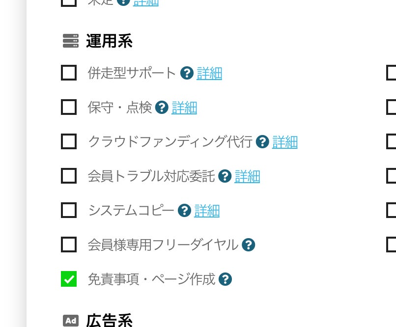 様々な業界や活動に対応した免責事項を作成し「免責事項」ページとして配置いたします。