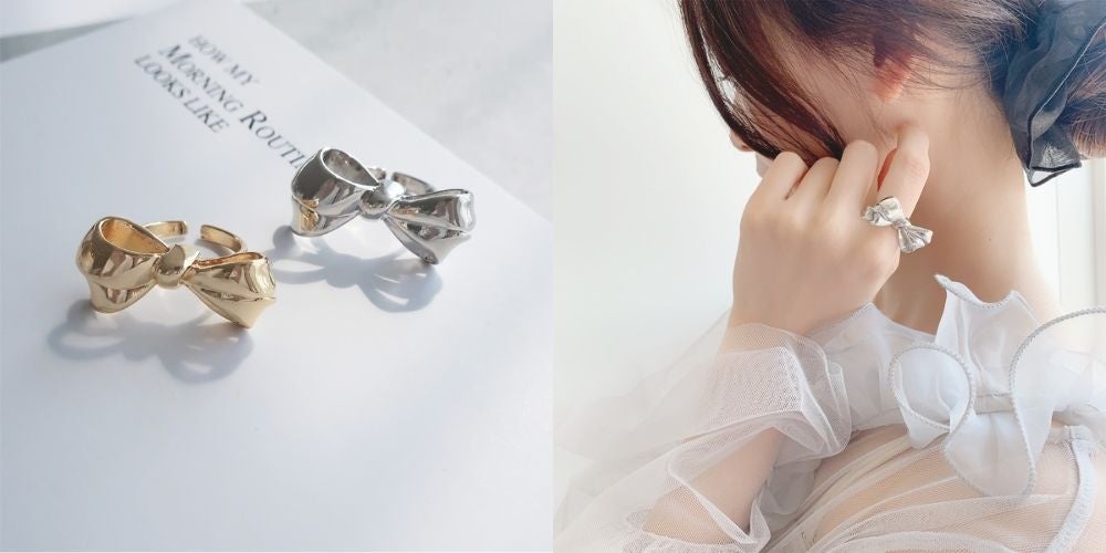 立体感のある大きめモチーフのリボンリング。