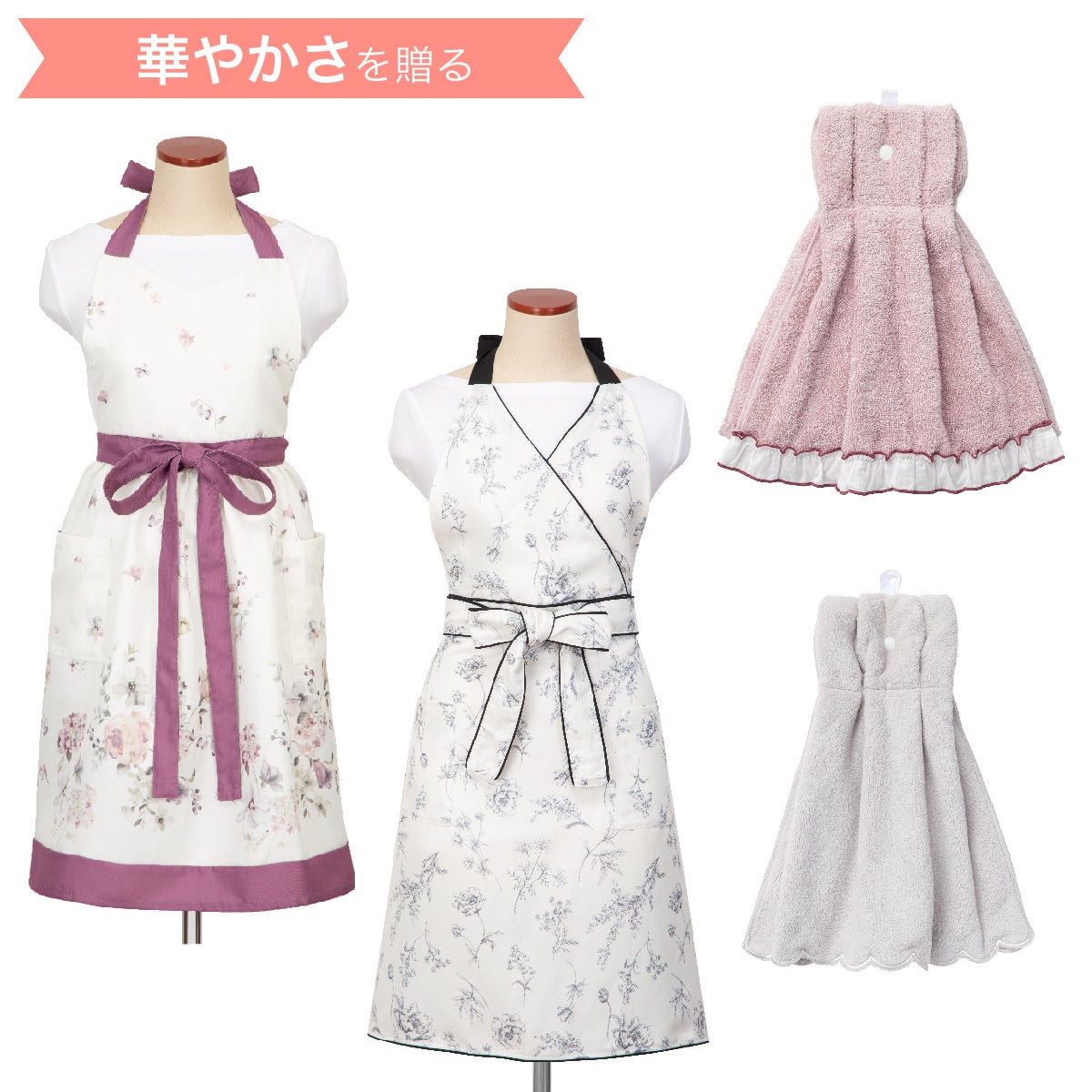 可憐なデザインのエプロンやドレスタオルで毎日を華やかに
