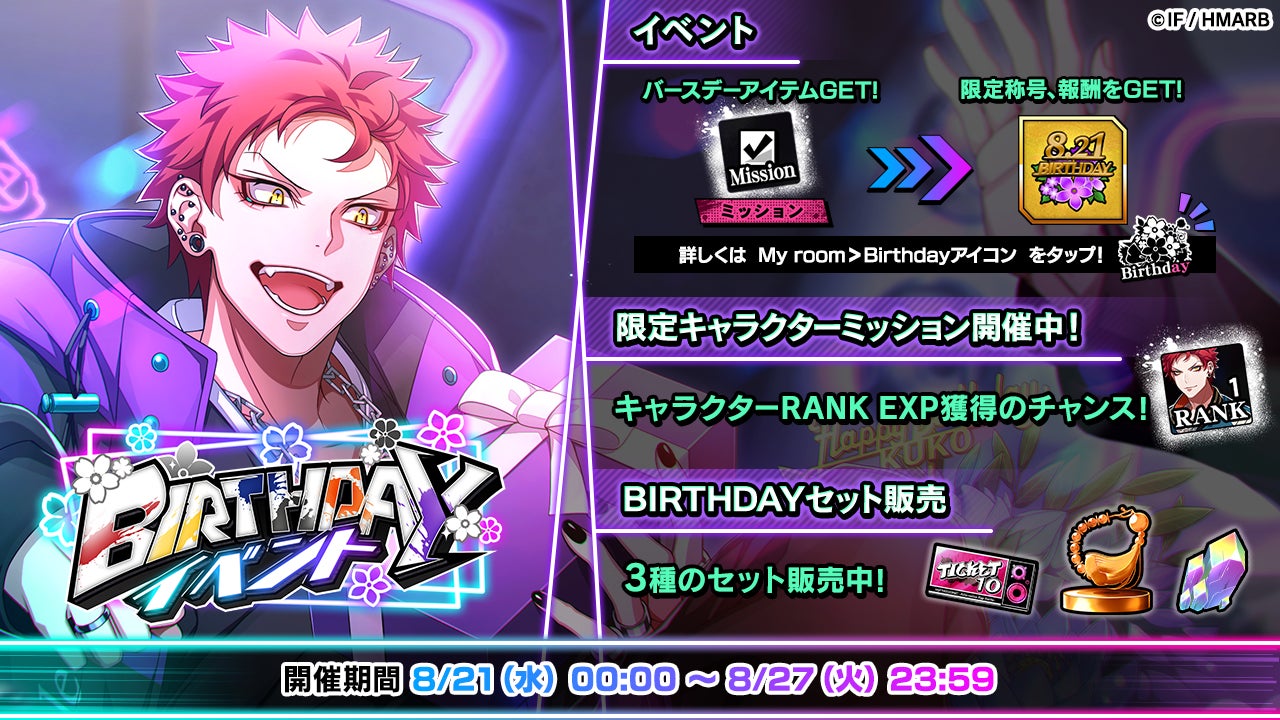 波羅夷空却の誕生日を記念し、「SSR【バースデー2024】波羅夷空却」を獲得することができるGコレクトや、限定称号やアイテムを獲得できるイベントなどを開催しています。